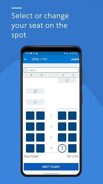 -Seat selection: Select or change your seat within the app. Just pick the one you’d like and change it on the spot.