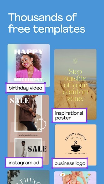 • Discover thousands of templates for Instagram, TikTok, Facebook, Twitter, YouTube, Snapchat, LinkedIn etc.