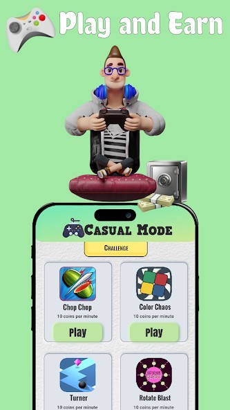 Casual Play Mode : Play games and earn money according to your score