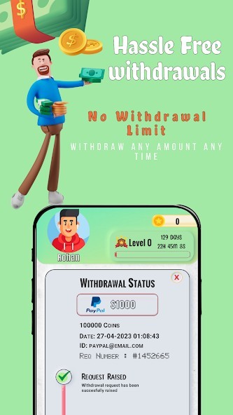Get coins for playing, convert it into cash and redeem it to various favorable modes of payment.